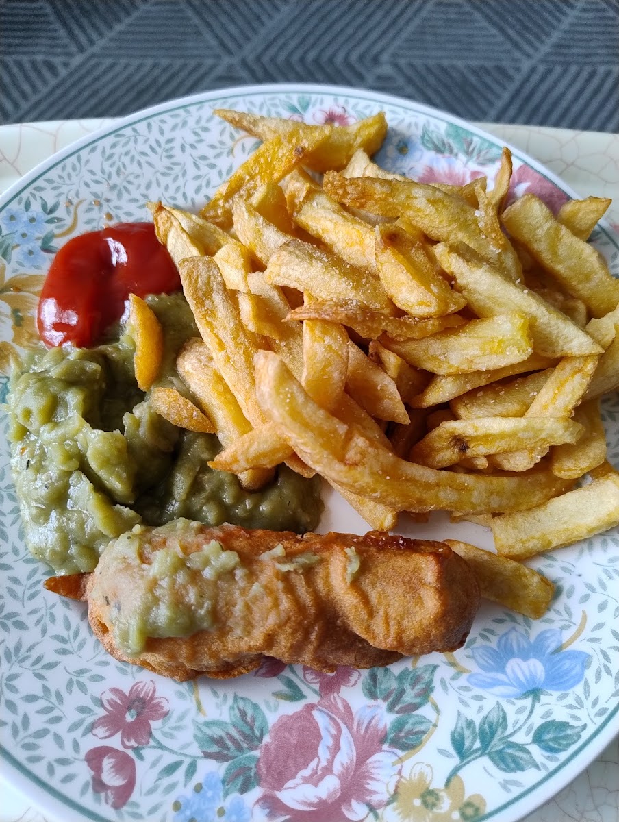 All of the staff are lovely people, and today they made my dreams come true! A gluten free & vegan battered sausage, with chips, and home made mushy peas from their other stall. They use "This isn't" branded vegan sausages at the moment which suited me perfectly, coated in their gluten free batter. It was absolutely delicious, and the chips are gorgeous too. You can even get vegan mayo to dunk your chips. The mushy peas are sold on the other stall, just a row or two over. You have to try them, what an experience! Thanks to the team who made my day and went out of their way for us, we will be repeat customers