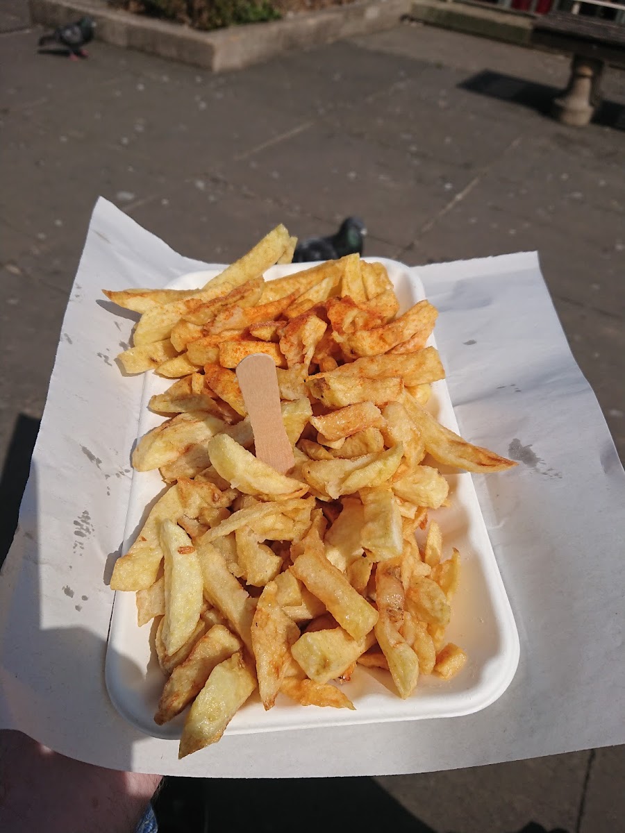 Absolutely the hidden gem of eating on the go in Norwich. Such good value and so sustainability aware the old fashioned way. There's two stalls. The fish and chips one Fry's everything in veg oil and offers gluten free and vegan as well. The mushy peas stall fry in beef fat and do traditional pies and THE BEST home made mushy peas IN CROCK POTS!!! You don't have to use throwaway omgoodness it's heaven on earth Can't recommend it enough I'll give it 10/5⭐⭐⭐⭐⭐⭐⭐⭐⭐⭐⭐