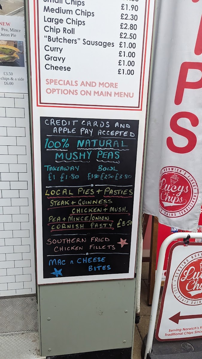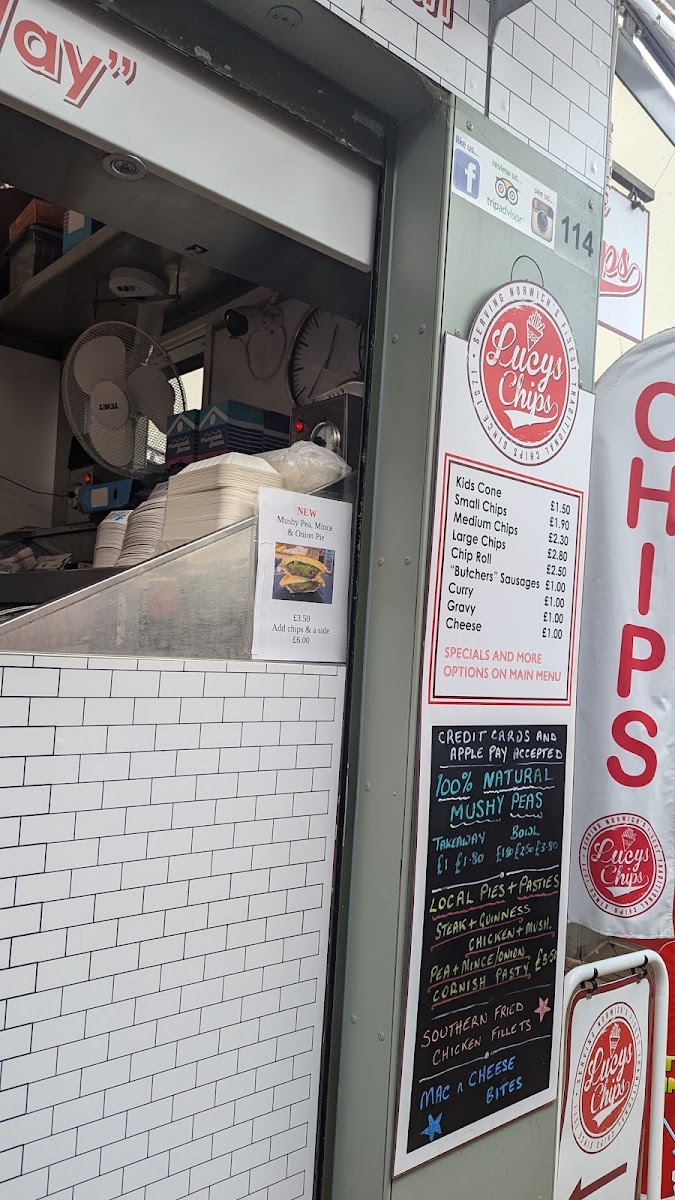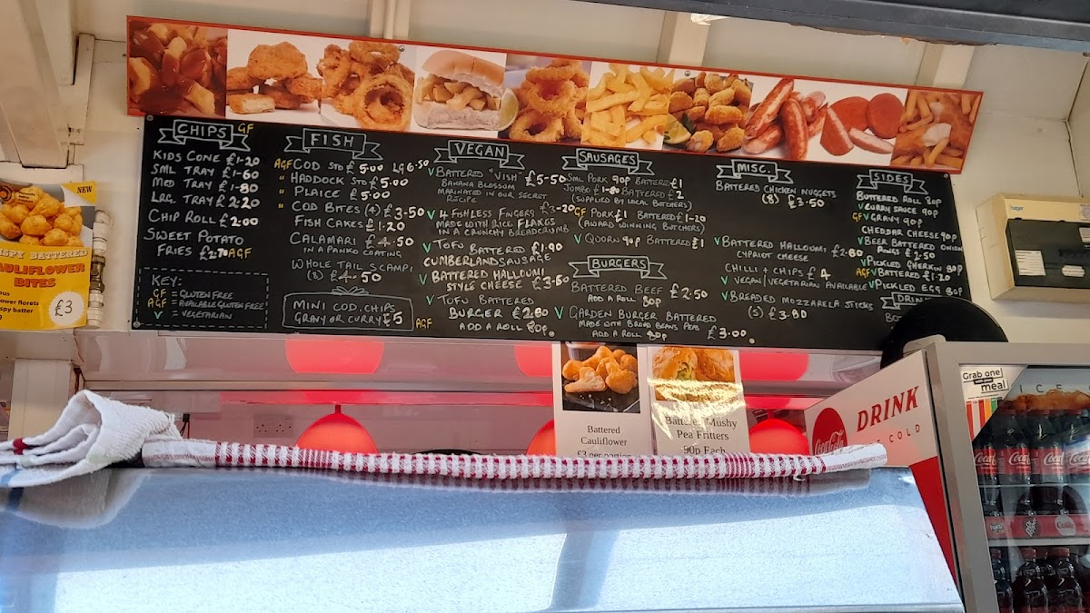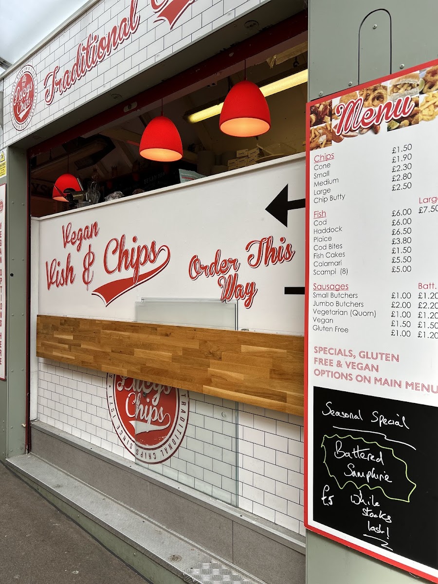 Lucy’s Chips offers a straightforward and inviting menu centered around traditional fish and chips with a welcoming, casual vibe. The menu is designed for those seeking comforting bites that feel familiar yet thoughtfully crafted, making it ideal for a relaxed midday or early evening meal.